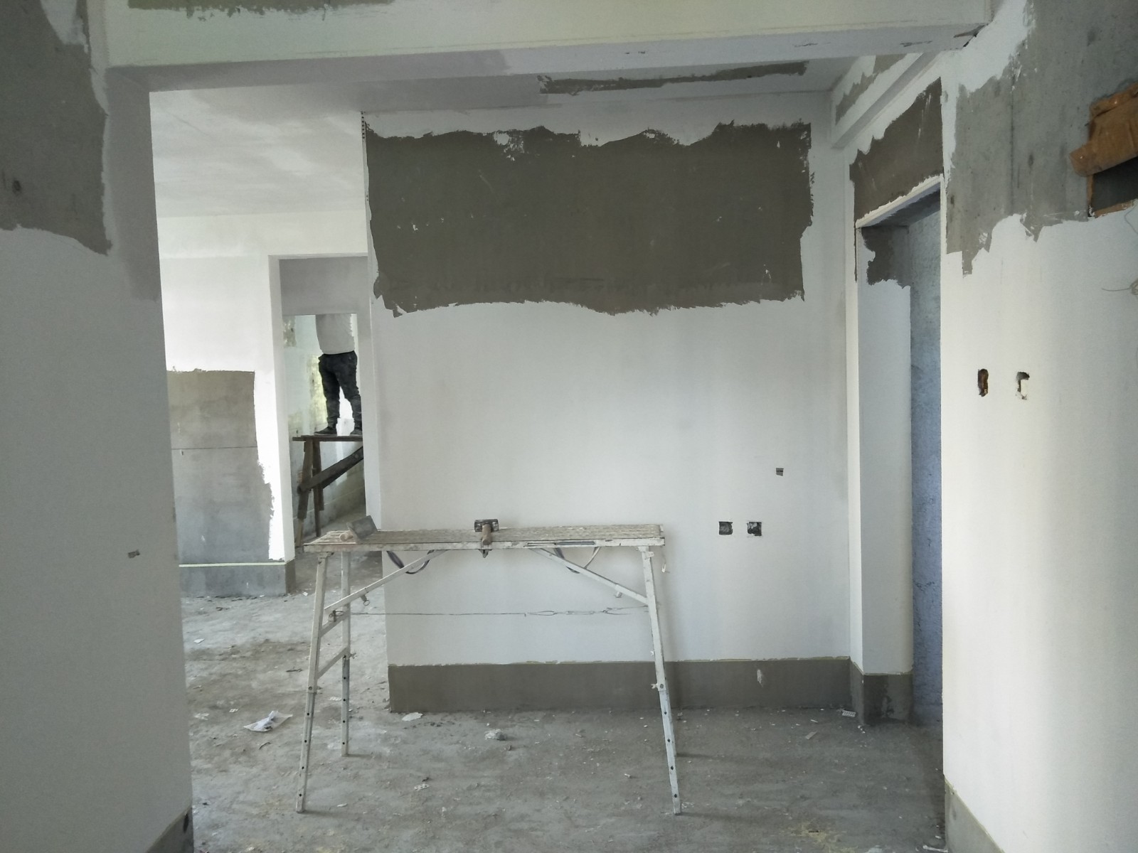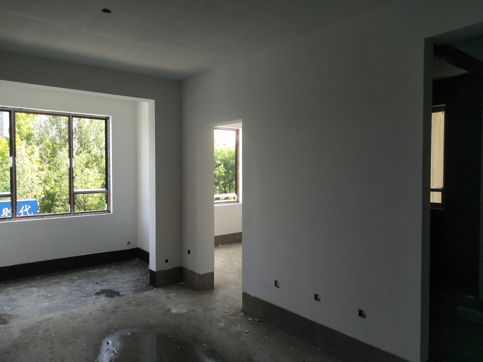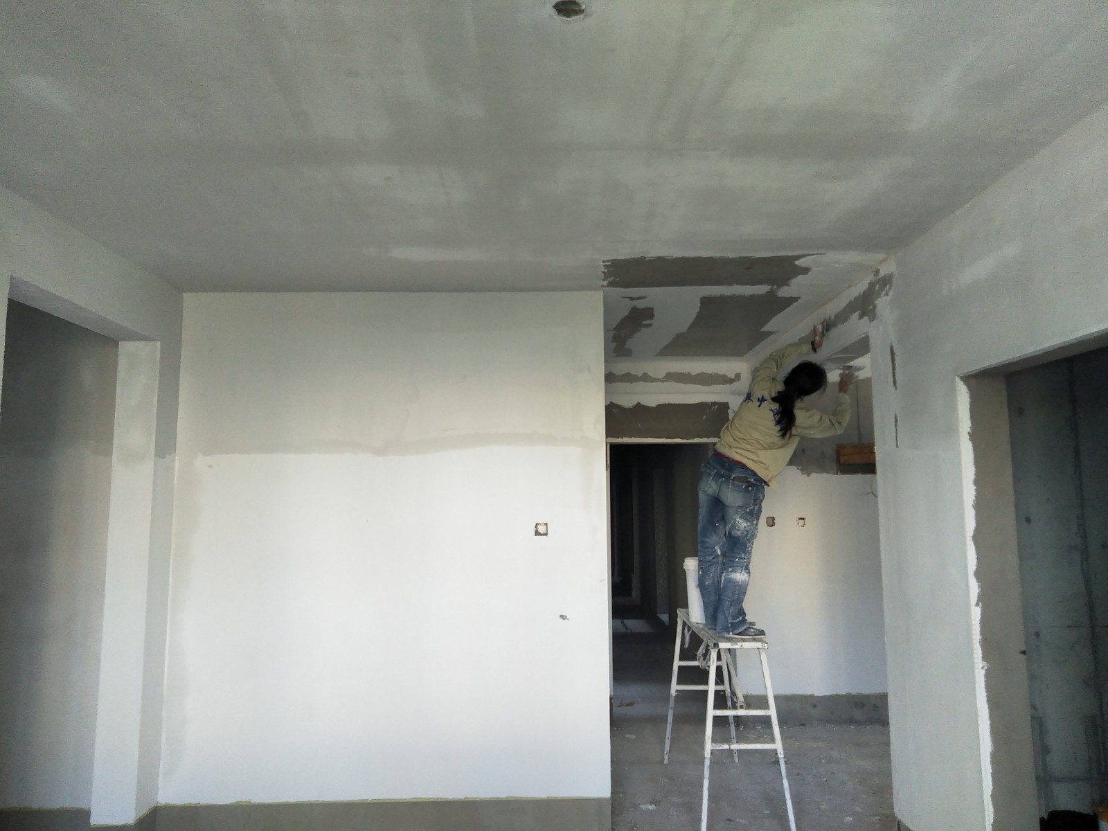 樓道、地下二層,用抗裂砂漿找平垂直,用防水膩?zhàn)优?,砂紙打平后刷二遍乳膠漆。